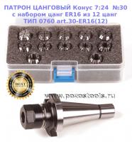 ПАТРОН ЦАНГОВЫЙ Конус 7:24 №30 с набором цанг ER16 из 12 цанг ТИП 0760 art.30-ER16(12)
