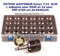 ПАТРОН ЦАНГОВЫЙ Конус 7:24 №30 с набором цанг ER40 из 24 цанг ТИП 0760 art.30-ER40(24)