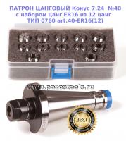 ПАТРОН ЦАНГОВЫЙ Конус 7:24 №40 с набором цанг ER16 из 12 цанг ТИП 0760 art.40-ER16(12)