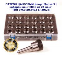 ПАТРОН ЦАНГОВЫЙ Конус Морзе 3 с набором цанг ER40 из 24 цанг ТИП 0760 art.MS3-ER40(24)