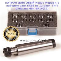 ПАТРОН ЦАНГОВЫЙ Конус Морзе 4 с набором цанг ER16 из 12 цанг ТИП 0760 art.MS4-ER16(12)