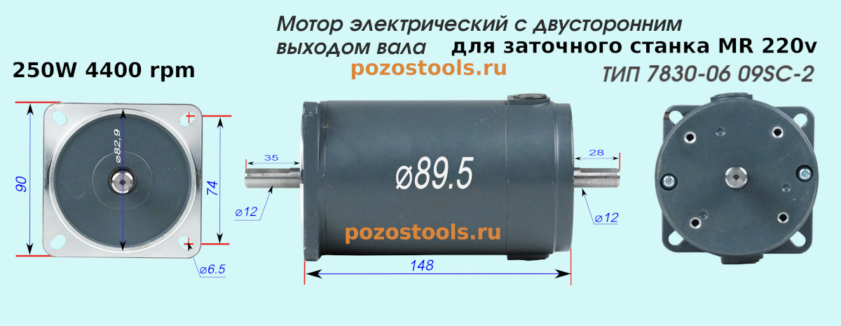 Мотор электрический для станка заточного ТИП 7830-06 09SC-2 с двусторонним выходом вала