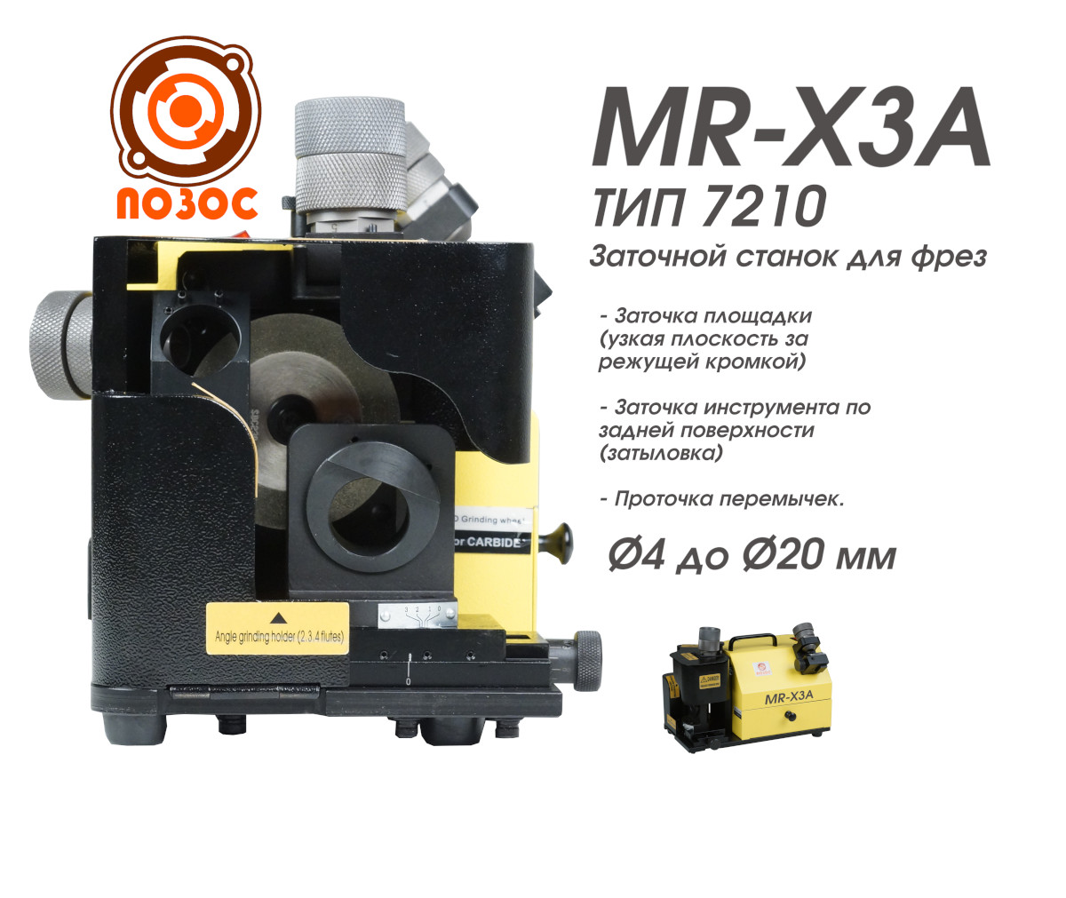 ТИП 7210 MR-X3A Заточной станок для фрез MR-X3A диапазон затачиваемых фрез - от Ø4 до Ø20 мм
