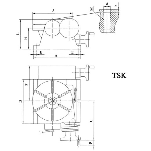 Столы поворотные наклоняемые серии TSK предназначены для деления, кругового резания, установки углов, расточки, локальной обработки и подобной работы совместно с фрезерными станками. Этот тип столов специально предназначен для выполнения машинных операций с большими возможностями измерения, чем столы серии TS или TSL. Основание позволяет использовать столы и в вертикальном положении для проведения работ с использованием задней бабки.